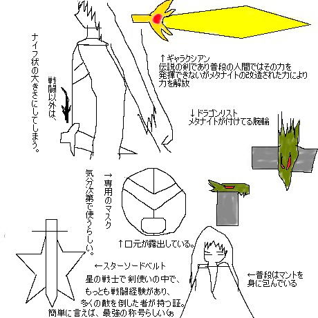 メタナイトです。 メタナイト 年齢・21歳 性別・男 CV・林剛史氏【[特撮]特捜戦隊・デカレンジャー(デカブルー、戸増宝児など)】 性格・冷静 必殺技・ギャラクシアン・ソード・ビーム、ソード・トルネード、スピン・スラッシュ 星の戦士のエースの一人で、もっとも誇りの高い戦士。 先輩のジョーグ(ナックルジョーの父)とガールート(シリカの母)とは同じ部隊であったが、 ジョーグはHN社に操られ戦死、ガールートは宇宙人に殺されてしまった。 友を失った彼は、正体不明の宇宙人が送り込んだ魔獣に追われるが、宇宙人、ソードとブレイドと 出会い、3人で撃退、仲間となった。そして、仲間を増やし続けメタナイツを結成した。 現在はポップスターに住み、DDDに入ったフリをして、彼らの送り込む魔獣や宇宙人を倒し続けた。 今までよりも厳しい戦いに備え、DDDに改造人間にしてもらった。 改造された力によってギャラクシアンの全ての力を解放する事ができる。 また、伝説の剣、マスター・ソードを持つことができた。 カービィと出会い、彼に星の戦士としての厳しさをぶつけた事もある。 宇宙人に襲われるフームを助け、彼女に恋をしてしまったが、本人は全くその気持ちを見せない。 ハーフムーン星人が襲来することに気づき、カービィをさらに強くしようとするが、 マルクに「カービィは我々の仲間だ!」と言われ、戦艦ハルバードで、 カービィをプププビレッジごと破壊しようとしたが、カービィとの決闘に敗れ、 フームからの説得を受け、破壊活動をやめ、再びカービィの戦いを見守る事になる。 後にヴァルキリー(カービィの女体形態)にもうかつにも一目ぼれしてしまう事もあったそうだ。 それで、フームかヴァルキリーかどちらを選ぶか悩んでいた事があるらしい(笑 スマブラX編では、亜空軍に洗脳され、ハルバードで世界を攻撃したが、自然に洗脳が解け、 カービィとマルスたちスマブラの戦士たちとの戦いで自然に洗脳が解け、 亜空軍に立ち向かった事がある。意外にも、変態なところもあり、エロスな本などを読んでいるらしい。 「あれは・・・・HN社の魔獣!!」 「この星を守るには機械の体しかないんだ。」 「カービィ!!お前はいずれ星の戦士の仲間になるのだ!!」 「侵略は絶対に許してはいけない行為だ。」 「・・・・・君はなぜ、私の側にいたい?」 PR ![]() ![]() |