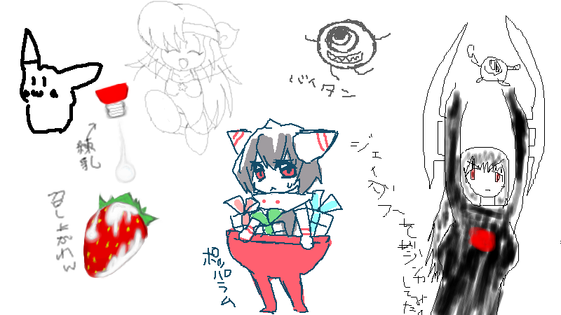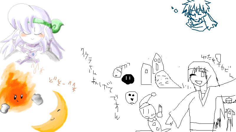 今回もエリクさんのサイトでやったので、そのキャプを残します。 ↑亜空軍のジェイダスの擬人化を描いてみましたwエリクさんがポップラムの擬人化を描いたそうです。 可愛いw ↑クウラさんにサクラコスのシリカをリクしてみたら、本当に描いてくださりました!(>< 衣装が可愛いです♪ちなみにうちはにょたカビとその他原型どもを描きました。 ↑お題あみだでうちは「スマブラ」になりました。カービィ、オリマー、ゲームウォッチ、トゥーンリンク、 亜空軍よりポトロン、シェリー、ギラーンも出演させましたw私の出題した「アニメコス」にあたったクウラさんが、 ひぐらし(見てないが)のレナコスのシリカを描きました。凄い演出でした^^ 他の方(特にコシカさんの絵w)もいい感じでしたw PR ![]() ![]() |