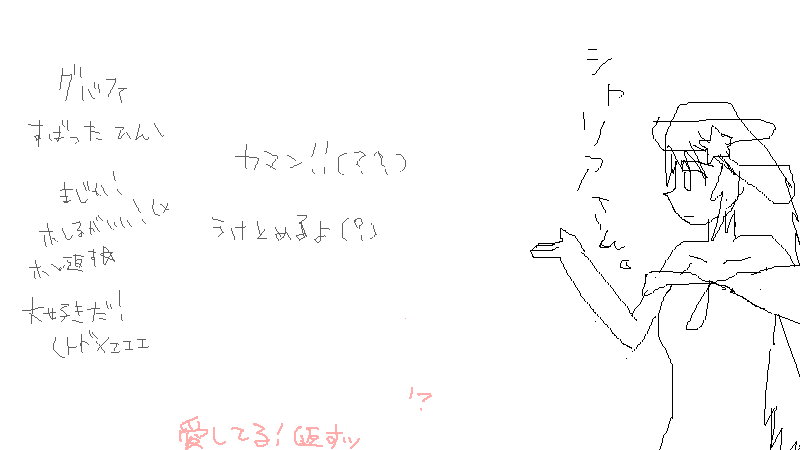 × [PR]上記の広告は3ヶ月以上新規記事投稿のないブログに表示されています。新しい記事を書く事で広告が消えます。 今日はひかるさんやすばるさんなど、懐かしい皆さんが来て、 ↑すばるさんのシャリアをお借りしました^^お姉さんな感じが可愛くてたまりませんww ↑すばるさんのワープスターと星風さんのワープスターをお借りしました。 Wワープスターを描いてみたかったんです。 ↑スマXのサンドバック君の擬人化が話題になったので、私も描いてみました。 亜空軍の反逆罪でこの姿で処刑されるところ、カービィに助けられる設定で^^ ↑星城さんのカビ子ちゃんを描きました^^やっぱ絵茶はにぎやかがいいですよね^^ PR ![]() ![]() |