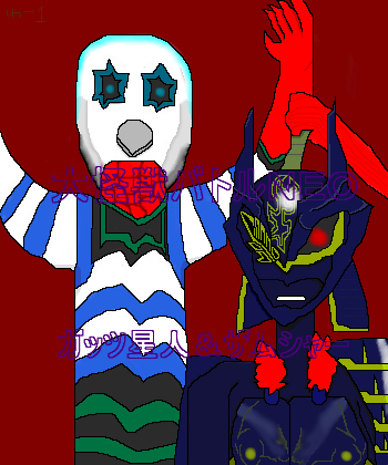 今回は大怪獣バトルの宇宙剣豪ザムシャーと分身宇宙人ガッツ星人を描きました。