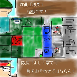 ちなみに、ギギをリーダーとして、初のストーリーでグドンの回をやりました(ぉま 今日はエリクさん宅でやりましたので、そのキャプ絵を載せます。 他に、旧サイトで載せたあの二枚の絵茶絵を載せようと思います。 謎の巨大な鳥が上空を飛び交い、飛行機を次々と墜落させていた。 |